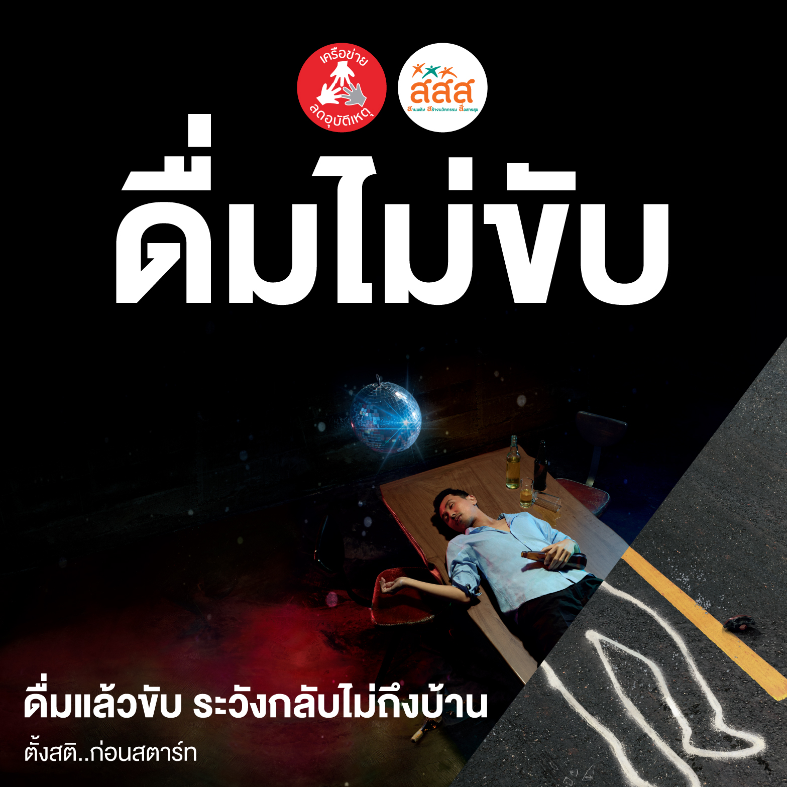 สำนักงานเครือข่ายลดอุบัติเหตุ (สคอ.) ภายใต้การสนับสนุนของสำนักงานกองทุนสนับสนุนการสร้างเสริมสุขภาพ (สสส.) ---------- ตั้งสติ..ก่อนสตาร์ท ----------- ลดเร็ว ลดเสี่ยง -:- ดื่มไม่ขับ --- ขับไม่ซิ่ง --- ง่วงไม่ขับ -:-