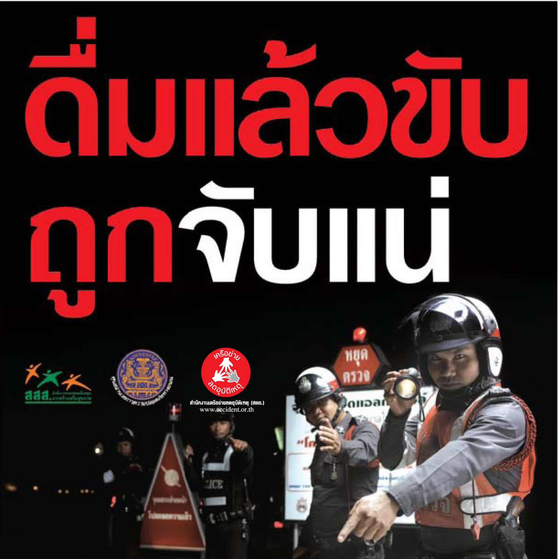 ป้ายตั้งโต๊ะ ดื่มแล้วขับ ถูกจับยาว