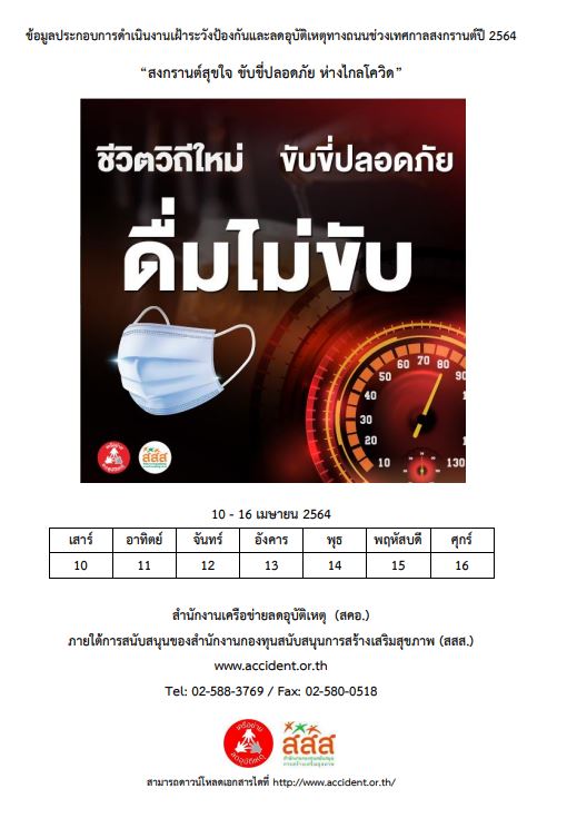 สำนักงานเครือข่ายลดอุบัติเหตุ (สคอ.) ภายใต้การสนับสนุนของสำนักงานกองทุนสนับสนุนการสร้างเสริมสุขภาพ (สสส.) ---------- ตั้งสติ..ก่อนสตาร์ท ----------- ลดเร็ว ลดเสี่ยง -:- ดื่มไม่ขับ --- ขับไม่ซิ่ง --- ง่วงไม่ขับ -:-