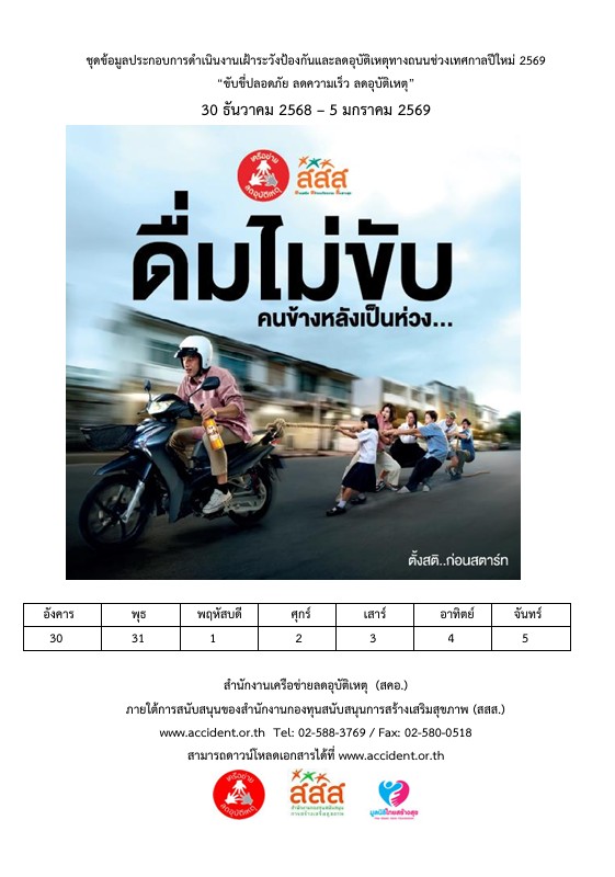 ชุดข้อมูลบูรณาการความปลอดภัยทางถนนช่วงเทศกาลปีใหม่2569
