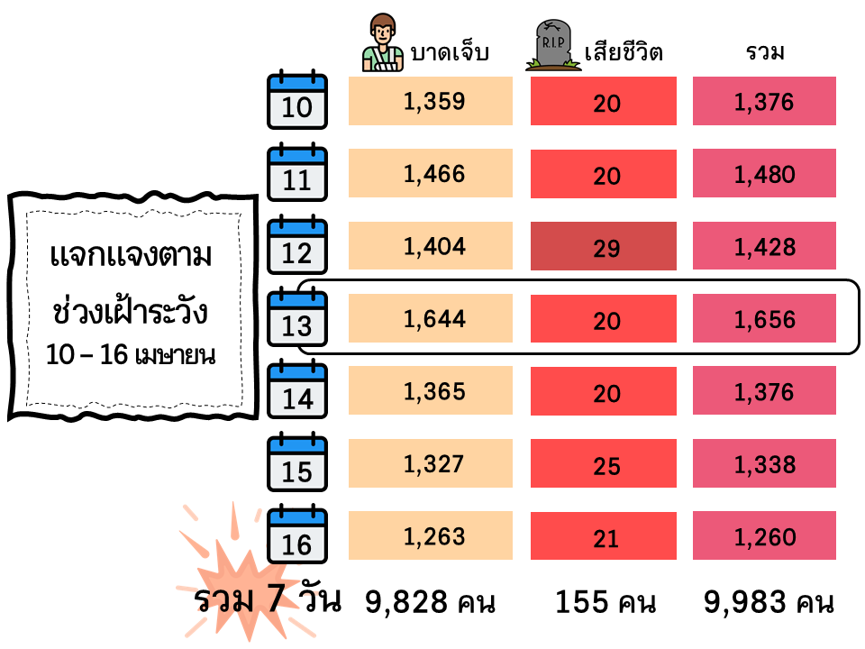 สถานการณ์การบาดเจ็บ เสียชีวิตจากอุบัติเหตุทางถนน