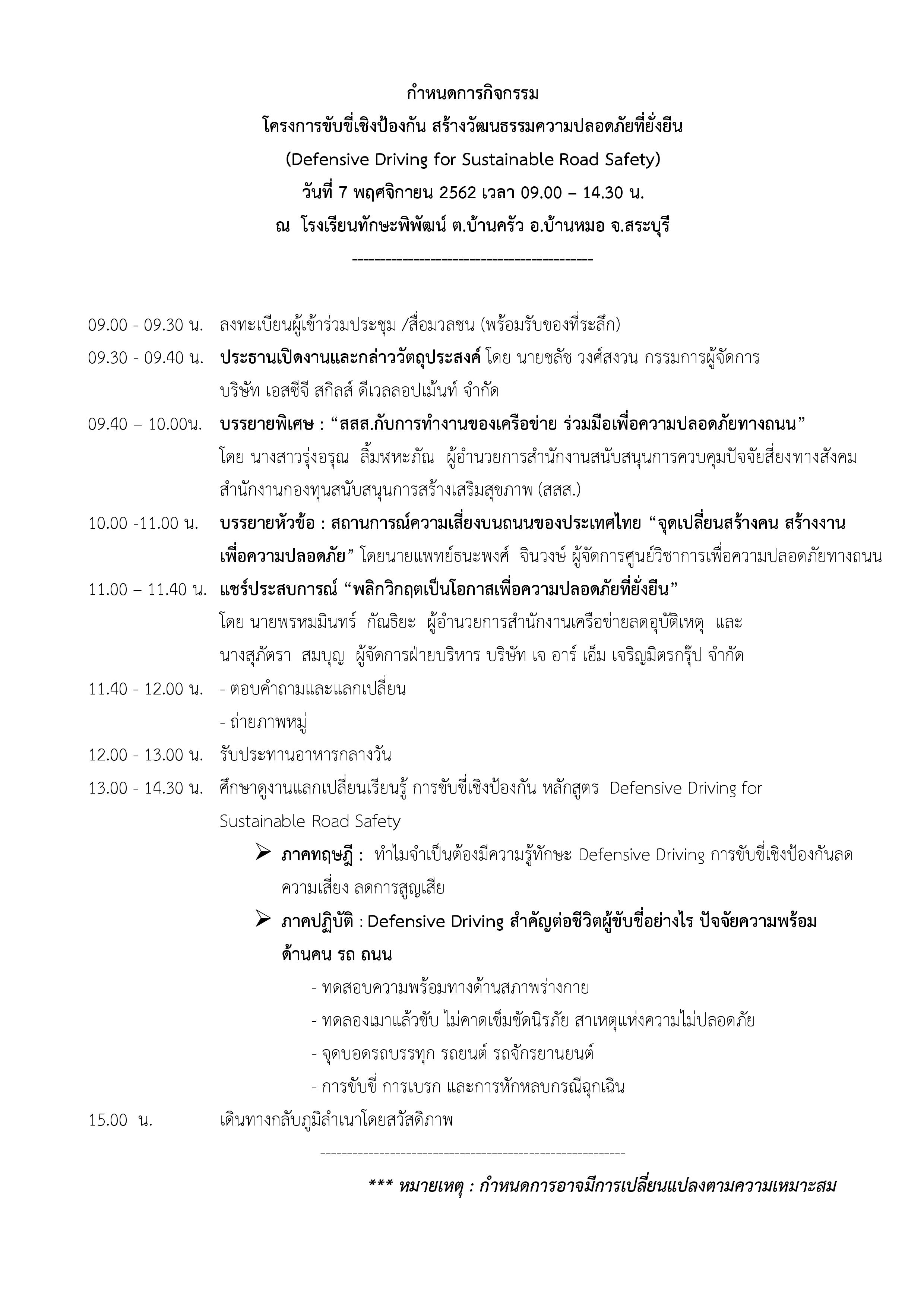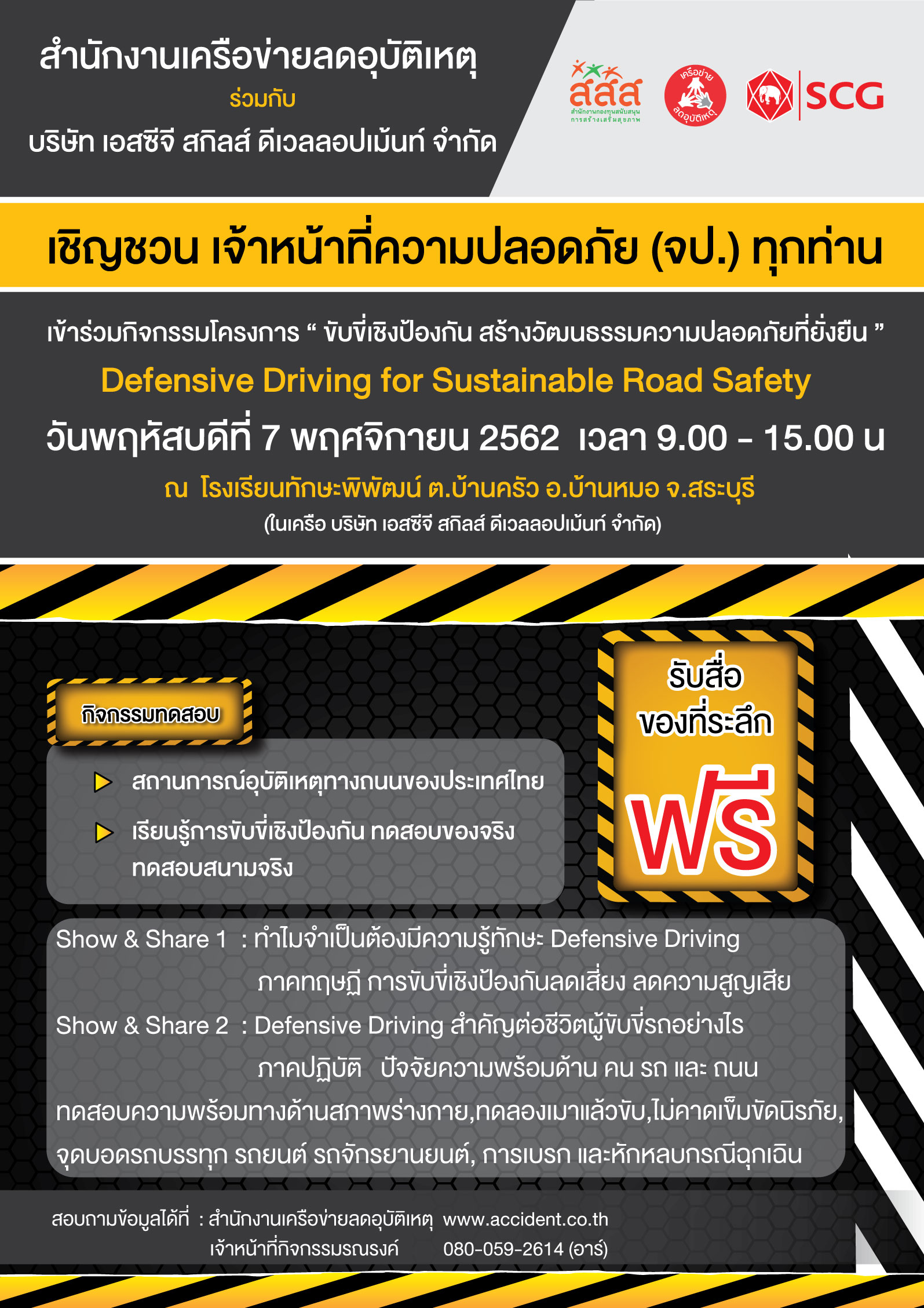 สำนักงานเครือข่ายลดอุบัติเหตุ ร่วมกับ บริษัท เอสซีจี สกิลส์ ดีเวลลอปเม้นท์ จำกัด